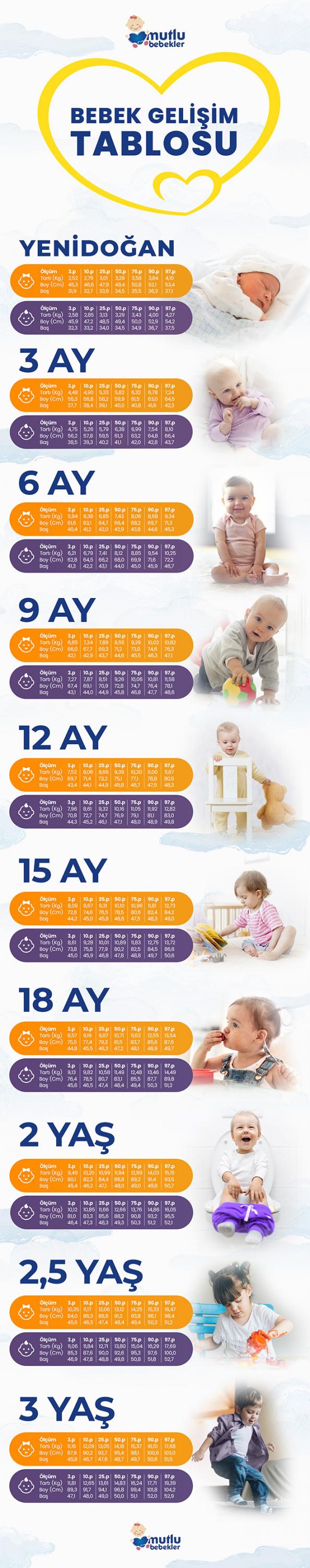 Bebeğinizin boy ve kilo oranını ve bulunduğu döneme göre uygunluğunu size gösteren tabloyu, “persentil” olarak da duyabilirsiniz. Persentil, büyüme eğrisi demektir. Yani bebeğin gelişiminin normal şekilde ilerleyip ilerlemediğini değerlendirilmesi persentil değerlerine göre yorumlanabilir. Persentil tablosu yani yaygın bilinen şekliyle boy kilo tablosundaki veriler, boy-kilo oranı, baş çevresi gibi büyüme ve gelişme ile ilgili çeşitli parametrelerin değişik yaşlarda gösterdikleri alt ve üst sınırları, gelişimini olağan şekilde tamamlayan bebek gruplarından alınır. Bu değerlere bakarak bebeğin belirlenen gelişim değerlerine uygunluğu kontrol edilir ve gelişim takibi yapılır.