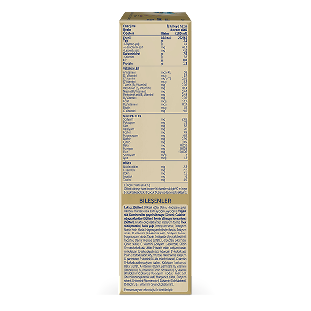 •Bebelac Gold Çocuk Devam Sütü prebiyotik bileşen içerir.